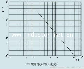 在低頻時,一般磁珠的相對導磁率都很大(大于100),但在高頻時其有效導磁率只有相對導磁率的幾分之一,甚至幾十分之一。因此,磁珠也有截止頻率 的問題,所謂截止頻率,就是使磁珠的有效導磁率下降到接近1時的工作頻率fc,此時磁珠已經失去一個電感的作用。一般磁珠的截止頻率fc都在 30~300MHz之間,截止頻率的高低與磁珠的材料有關,一般導磁率越高的磁芯材料,其截止頻率fc反而越低,因為低頻磁芯材料渦流損耗比較大。使用者在進行電路設計的時候,可要求磁芯材料的提供商提供磁芯工作頻率與有效導磁率的測試數據,或穿心電感在不同工作頻率之下的曲線圖。圖5是穿心電感的頻率曲線圖。